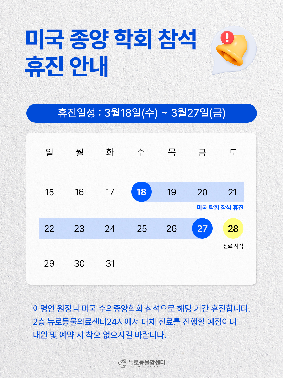 * 진료시간 외 응급진료의 경우, 2층 뉴로동물의료센터24시로 내원부탁드립니다.
