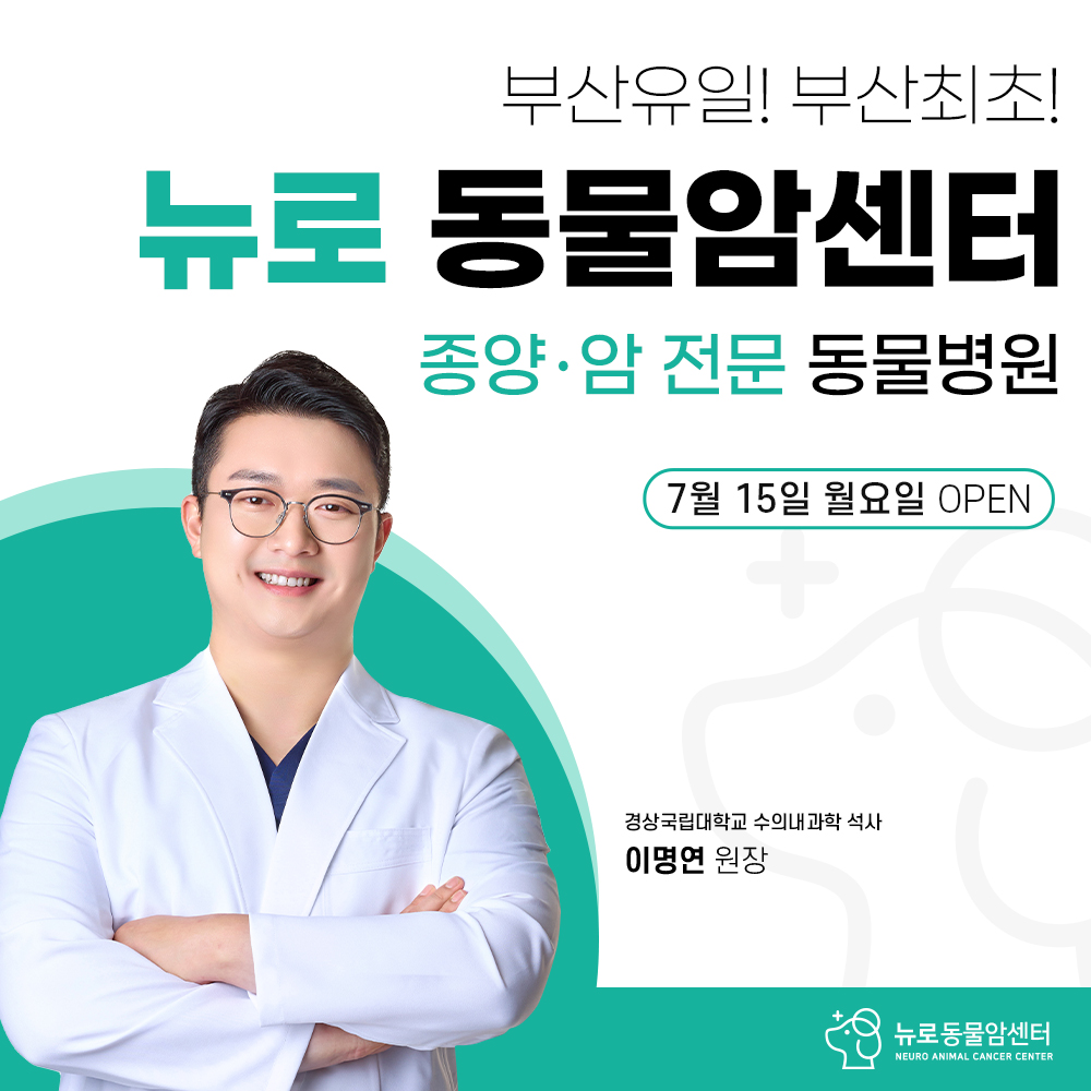 뉴로동물암센터는 2024년 7월 15일 월요일 개원예정입니다.
